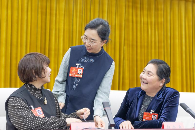 3月7日,全國人大代表胡海娟(左)建議,通過在各級學(xué)校設(shè)立專職家庭教育指導(dǎo)教師等舉措,強(qiáng)化家庭教育指導(dǎo),推動家校社協(xié)同育人,促進(jìn)青少年健康成長。記者 于濤 攝