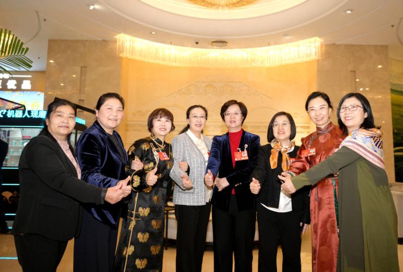 3月7日,參加十四屆全國人大三次會議的內(nèi)蒙古代表團(tuán)的部分女代表們在駐地合影,迎接即將到來的三八婦女節(jié),表達(dá)了對全國女性的美好祝愿。記者 馬建兵 攝