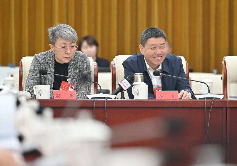 3月7日,全國人大代表莊河(右)說,中國鐵路呼和浩特局集團(tuán)有限公司將積極落實政府工作報告的相關(guān)要求,加強(qiáng)鐵路基礎(chǔ)設(shè)施建設(shè),優(yōu)化客運產(chǎn)品,實現(xiàn)多樣供給,大力發(fā)展鐵路現(xiàn)代物流,發(fā)揮好鐵路對推動經(jīng)濟(jì)社會高質(zhì)量發(fā)展的支撐保障作用。記者 馬建兵 攝