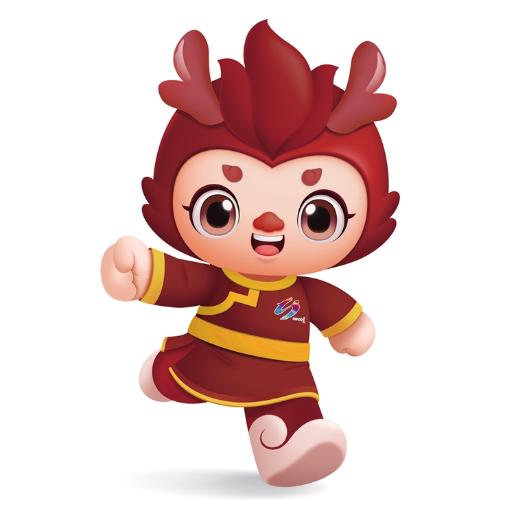 吉祥物“赤龍兒”,寓意鮮明、簡潔響亮,又有舉辦地“赤峰”的內涵。吉祥物活潑可愛、聰慧靈動,身著以赭紅色(赤峰紅山山體顏色)和黃色為整體色彩的民族服飾,既凸顯“紅山文化”特色,又體現(xiàn)運動會激情熱烈、陽光活力的氛圍;臉上洋溢著自豪的笑容,以奔跑的姿態(tài)歡迎各地來賓蒞臨赤峰,充分展現(xiàn)內蒙古各族人民勤勞樸實、熱情好客的優(yōu)良品質。