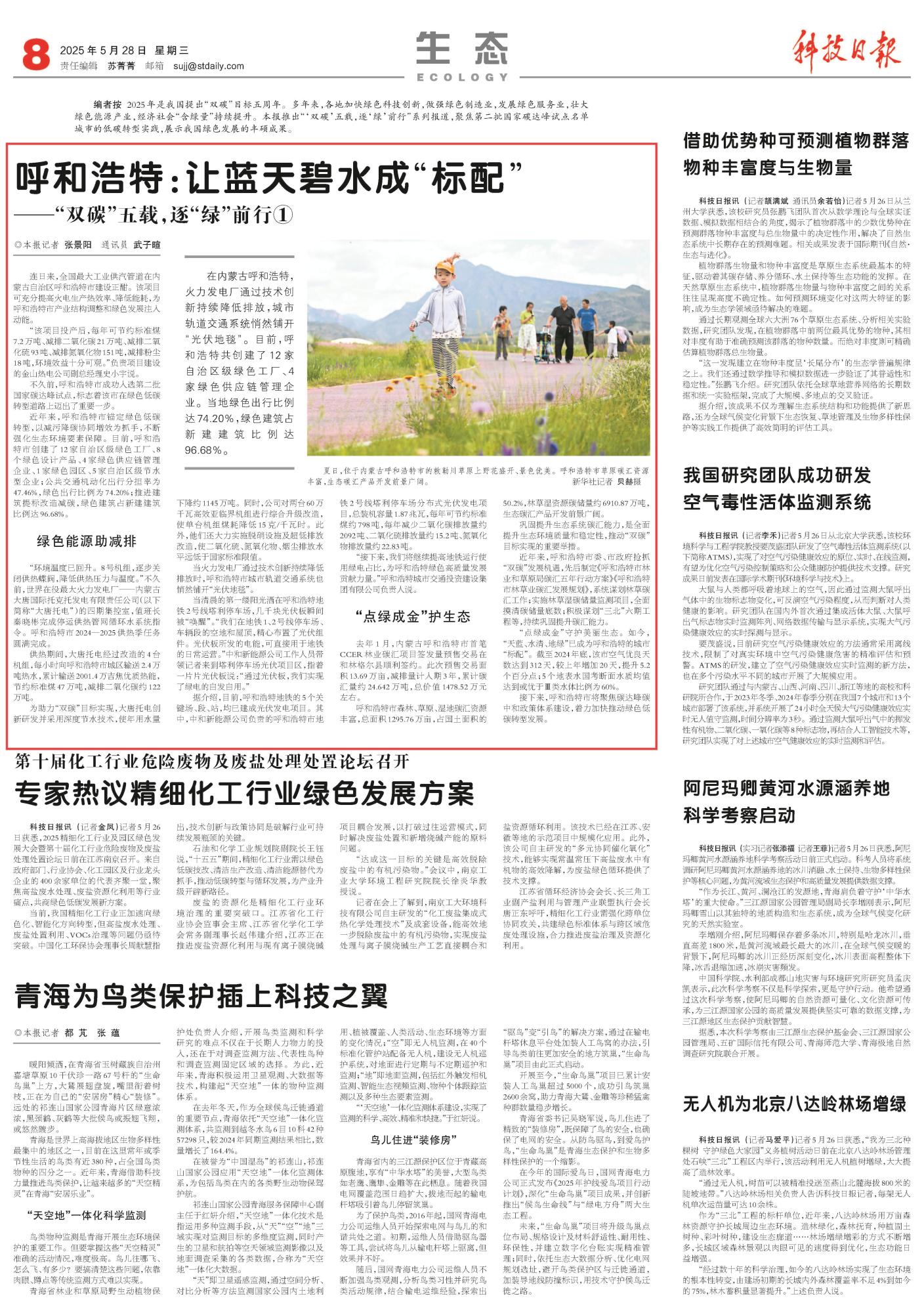 2025年5月28日,《科技日?qǐng)?bào)》第8版刊發(fā)了《呼和浩特:讓藍(lán)天碧水成“標(biāo)配”——“雙碳”五載,逐“綠”前行①》的文章,報(bào)道了內(nèi)蒙古呼和浩特“點(diǎn)綠成金”守護(hù)美麗生態(tài)?;鹆Πl(fā)電廠通過技術(shù)創(chuàng)新持續(xù)降低排放,城市軌道交通系統(tǒng)悄然鋪開“光伏地毯”?!疤焖{(lán)、水清、地綠”已成為呼和浩特的城市“標(biāo)配”。