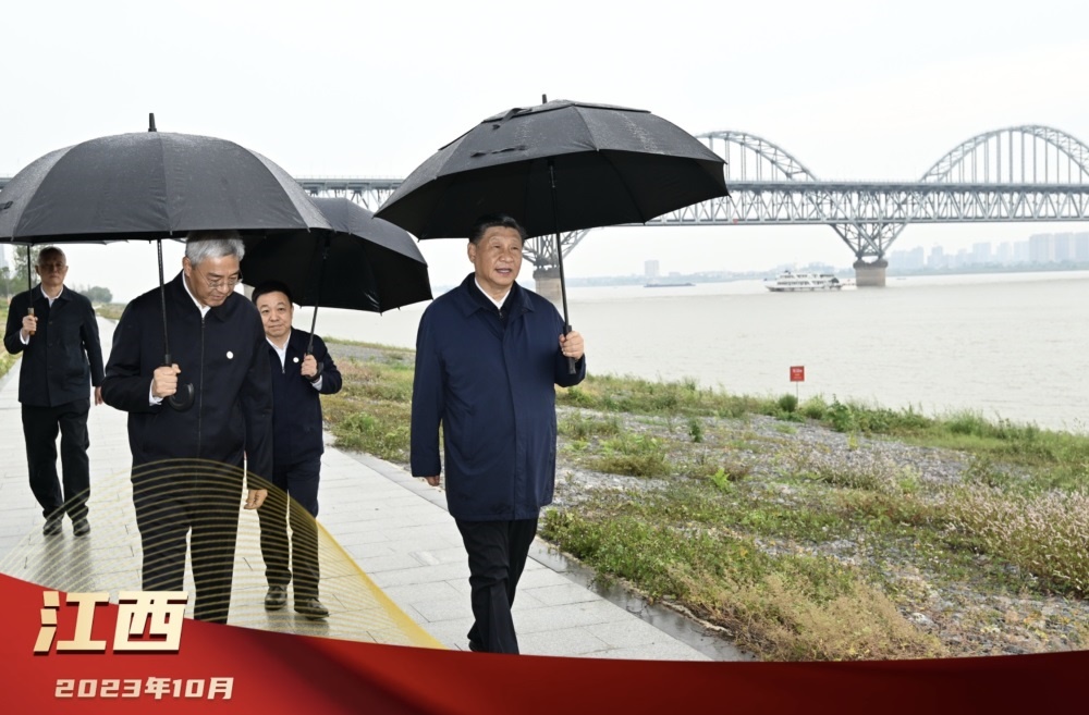 2023年10月10日下午,習(xí)近平總書記在江西九江市考察,冒雨在江邊察看,了解當(dāng)?shù)亻L江國家文化公園建設(shè)、長江岸線生態(tài)修復(fù)等情況。10月12日,總書記在進(jìn)一步推動(dòng)長江經(jīng)濟(jì)帶高質(zhì)量發(fā)展座談會(huì)上回顧長江經(jīng)濟(jì)帶發(fā)展歷程,感慨:“做就要做好,堅(jiān)定做下去。篤行不怠,一以貫之,久久為功?!?/strong>