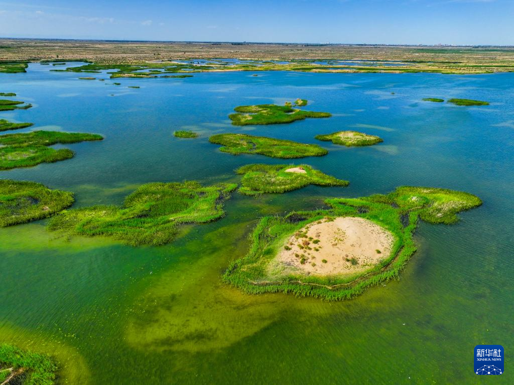 這是位于巴彥淖爾市磴口縣的奈倫湖國(guó)家濕地公園(6月5日攝,無(wú)人機(jī)照片)新華社記者 連振 攝