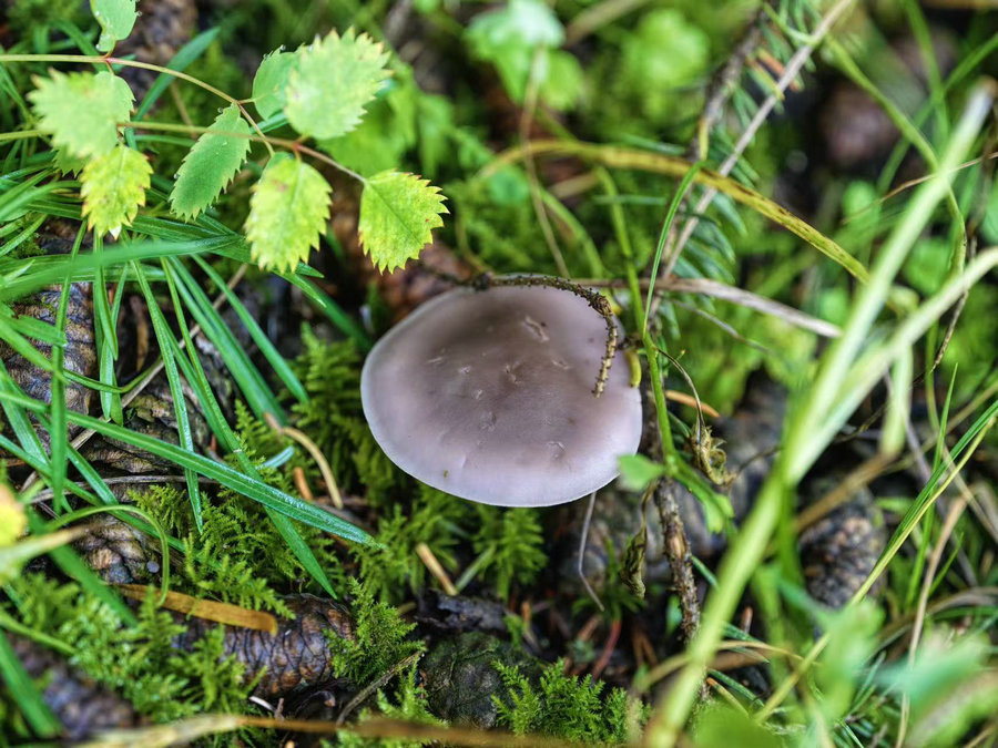 山間清風(fēng)裹挾著草木與泥土的濕潤氣息撲面而來,腳下的步道旁,松塔與翠綠的雜草間,不時冒出一朵朵野生蘑菇,宛如散落在林間的“小傘”,為靜謐的山野增添了幾分靈動。