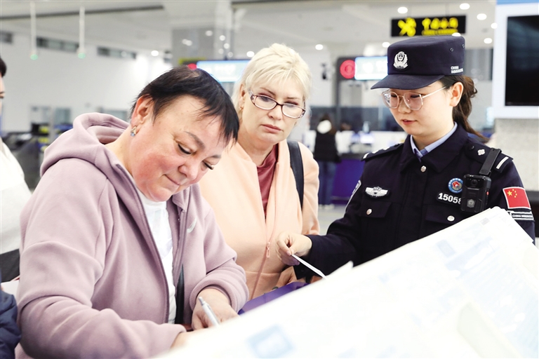 當(dāng)天上午9時,滿洲里口岸出入境大廳內(nèi),俄籍旅客有序排隊通關(guān),工作人員來回指引。俄羅斯公民維克多莉婭成為政策實施后首位入境旅客,她表示非常榮幸,計劃與朋友前往呼倫貝爾草原游覽;同行旅客阿麗娜、安娜斯塔西婭點贊通關(guān)“快且便捷”,透露將赴海拉爾感受當(dāng)?shù)匚幕?旅客葛利高里則對“可在華停留30天”的政策贊不絕口。