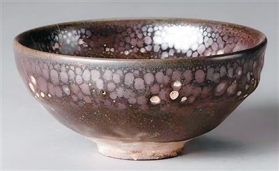 元代黑釉油滴瓷碗。本文圖片來(lái)源:盛樂(lè)博物館