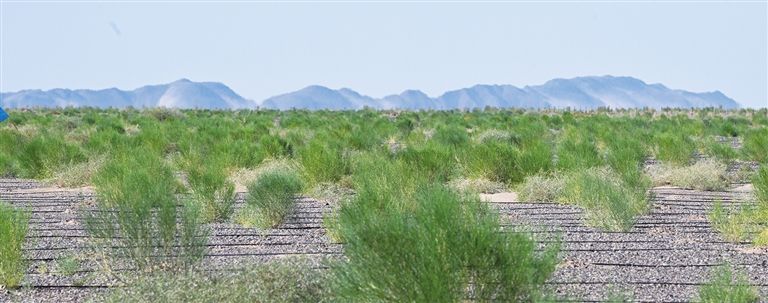 “這里是內(nèi)蒙古阿拉善盟西部荒漠綜合治理項目(二期)額濟(jì)納河片區(qū),是內(nèi)蒙古深入貫徹落實國家生態(tài)戰(zhàn)略、打贏河西走廊—塔克拉瑪干沙漠邊緣阻擊戰(zhàn)關(guān)鍵戰(zhàn)場之一。我們在這里人工種草6萬畝,現(xiàn)在已經(jīng)全部完成栽種,正在進(jìn)行養(yǎng)護(hù)工作。”額濟(jì)納河片區(qū)負(fù)責(zé)人關(guān)新偉介紹,項目由阿拉善盟林業(yè)和草原局推進(jìn),中國建筑一局有限公司、中鐵四局集團(tuán)有限公司等承建,額濟(jì)納旗林業(yè)和草原局為項目建設(shè)提供技術(shù)支撐。