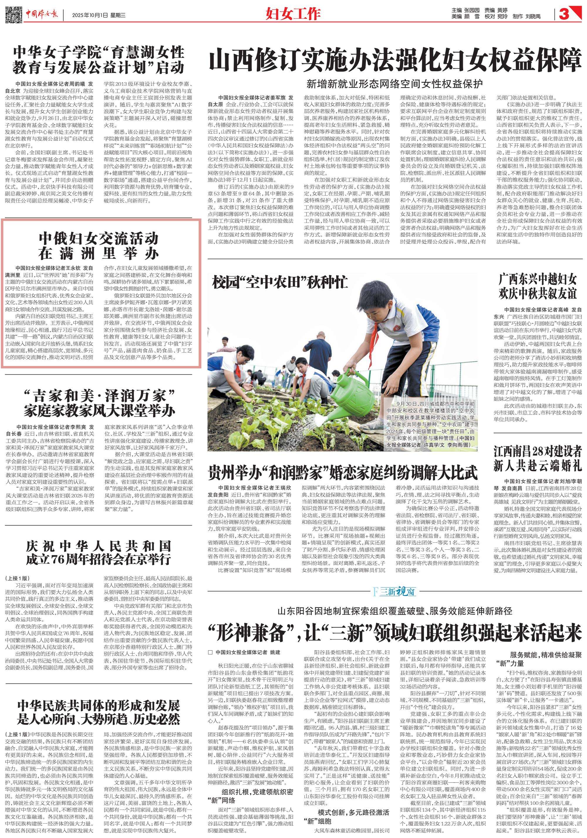 2025年10月1日《中國(guó)婦女報(bào)》第3版