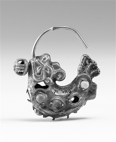 遼代嵌綠松石摩羯魚金耳墜。 來源:上海博物館網(wǎng)站