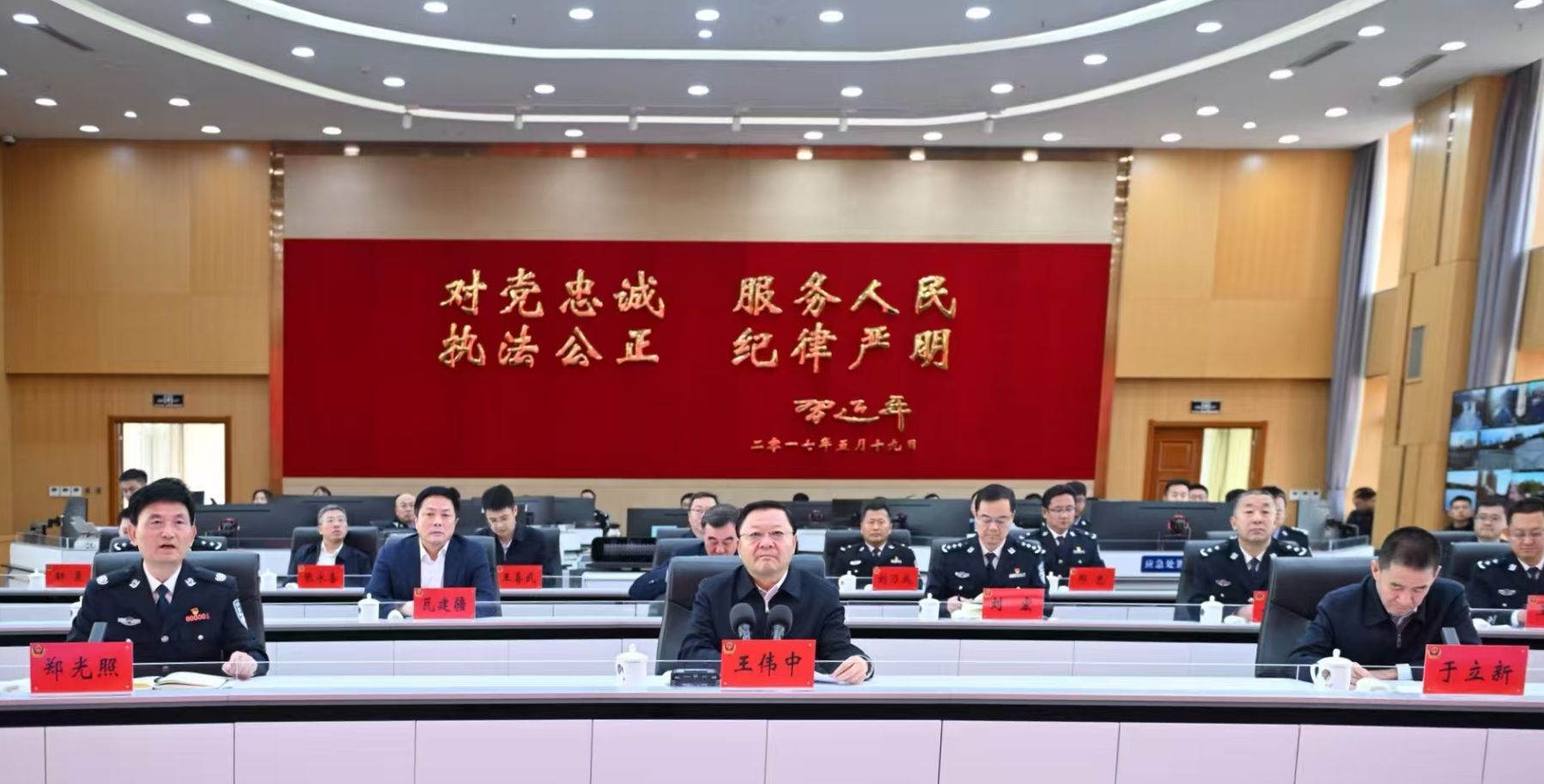 在自治區(qū)公安廳,王偉中參觀了情報(bào)指揮中心并視頻連線二連浩特口岸、赤峰旺業(yè)甸公安檢查站、呼和浩特大召?gòu)V場(chǎng)執(zhí)勤點(diǎn),了解公安廳“情指行”一體化運(yùn)行機(jī)制和相關(guān)工作情況。他指出,要深入貫徹“對(duì)黨忠誠(chéng)、服務(wù)人民、執(zhí)法公正、紀(jì)律嚴(yán)明”的總要求,牢牢把握我區(qū)作為邊疆民族地區(qū)的實(shí)際,嚴(yán)厲打擊違法犯罪,有效防范化解矛盾糾紛和風(fēng)險(xiǎn)隱患,嚴(yán)格規(guī)范公正文明執(zhí)法,為建設(shè)更高水平的平安內(nèi)蒙古貢獻(xiàn)力量。