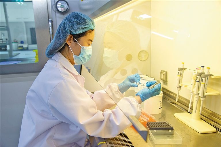 金宇保靈生物藥品有限公司科研人員正在獸用疫苗國家工程實(shí)驗(yàn)室做實(shí)驗(yàn)。