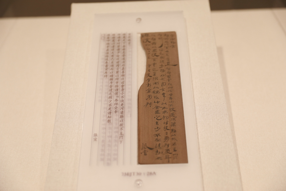 “‘簡(jiǎn)’讀居延—居延遺址出土漢簡(jiǎn)專題展”展出的漢簡(jiǎn)