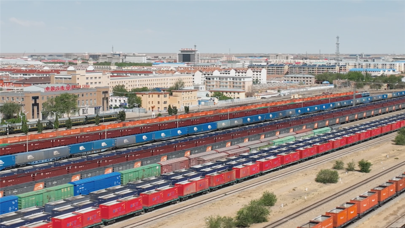 二連浩特鐵路口岸地處中蒙俄經(jīng)濟走廊核心,是中歐班列中通道唯一進出境鐵路口岸。在共建“一帶一路”倡議推動下,自2013年通行首列中歐班列以來,二連浩特鐵路口岸中歐班列開行數(shù)量、頻次呈現(xiàn)持續(xù)增長態(tài)勢,累計通行中歐班列超2.1萬列。運輸貨物品類從最初的金屬、化工、服裝鞋帽為主逐漸轉(zhuǎn)變?yōu)楝F(xiàn)在以新能源汽車、電子產(chǎn)品、家用電器等高附加值產(chǎn)品為主。
