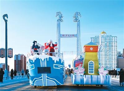 蒙古包群的另一邊,以馬為主題的彩色冰雕喜迎農歷馬年;13米長的未來機車巨型冰雕融合聲光電技術,營造科幻氛圍;以曲棍球冠軍群像為主題的雪雕群成為游客拍照留念的打卡點。