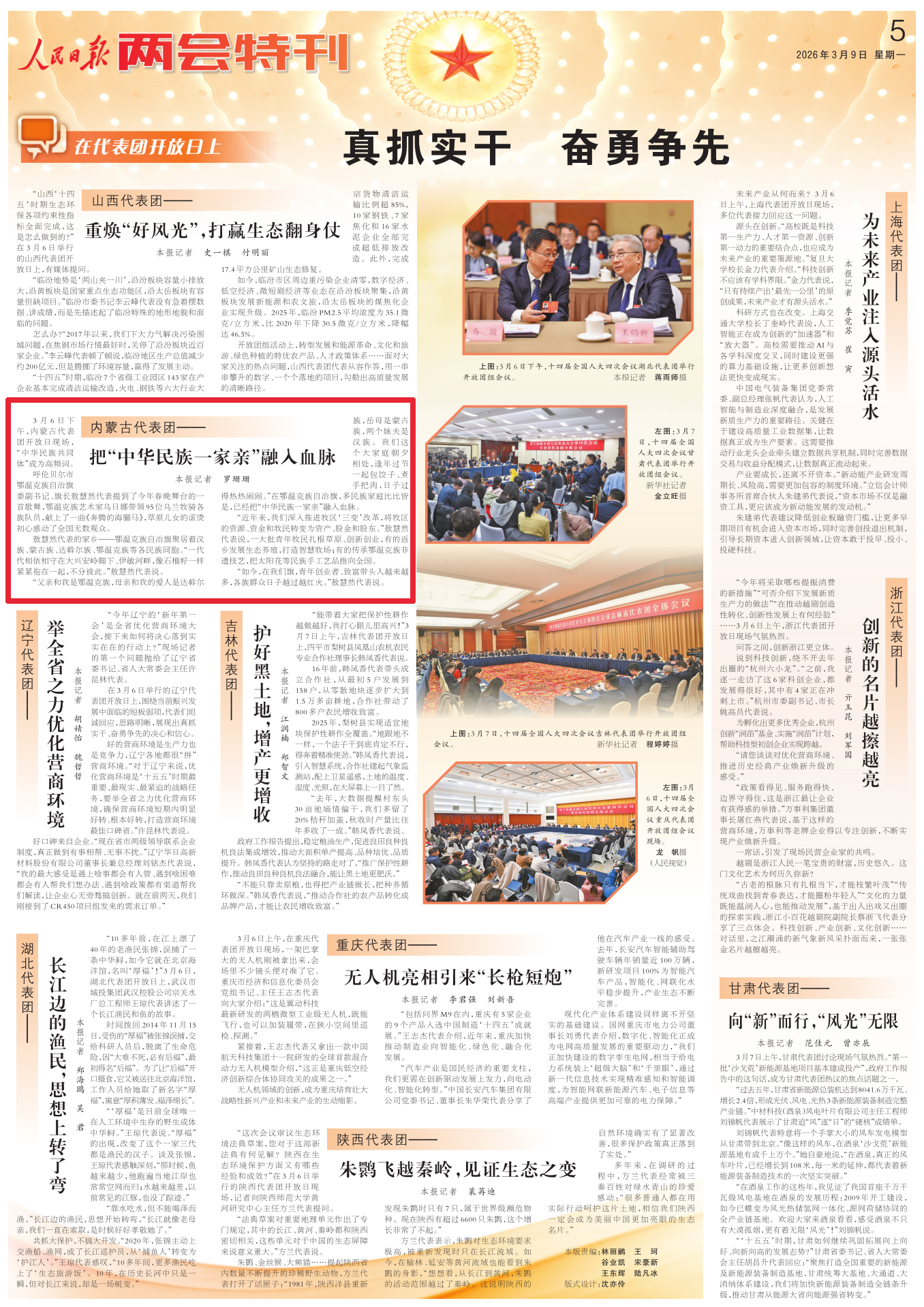 2026年3月9日,《人民日報》第5版刊發(fā)題為《內蒙古代表團——把“中華民族一家親”融入血脈》一文,報道了3月6日下午,內蒙古代表團開放日現(xiàn)場,“中華民族共同體”成為高頻詞。