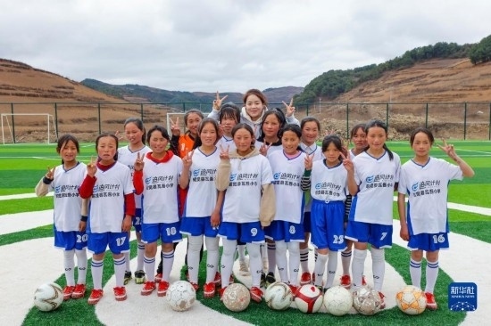 四川省涼山州昭覺縣瓦吾小學(xué)坐落于海拔約2700米的大涼山上,因?yàn)榈乩砦恢闷?、一年四季云霧繚繞而得名“云端小學(xué)”。校長(zhǎng)曲比史古2018年組建女足球隊(duì),希望通過(guò)足球讓這些大山里的女孩子收獲快樂(lè),也獲得更多人生可能性。過(guò)去幾年,孩子們都是在一片“手工自制”的泥地球場(chǎng)上訓(xùn)練,經(jīng)常受傷。得知瓦吾小學(xué)的情況后,中國(guó)足協(xié)、支付寶以及女足國(guó)腳們決定一起為這支校園女足隊(duì)捐贈(zèng)一座“玫瑰夢(mèng)想球場(chǎng)”。2022年底,全國(guó)第二座中國(guó)女足主題球場(chǎng)——“玫瑰夢(mèng)想球場(chǎng)”在大涼山上落成。