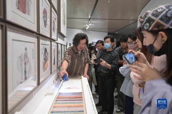 5月9日,作者申杰在展覽現(xiàn)場向觀眾介紹自己的作品。