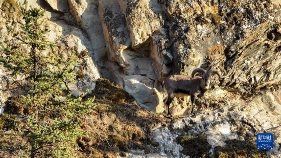5月11日在內(nèi)蒙古賀蘭山國家級自然保護(hù)區(qū)拍攝的巖壁上的巖羊(無人機照片)。