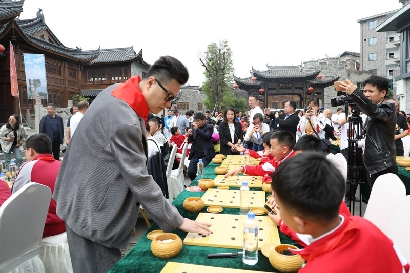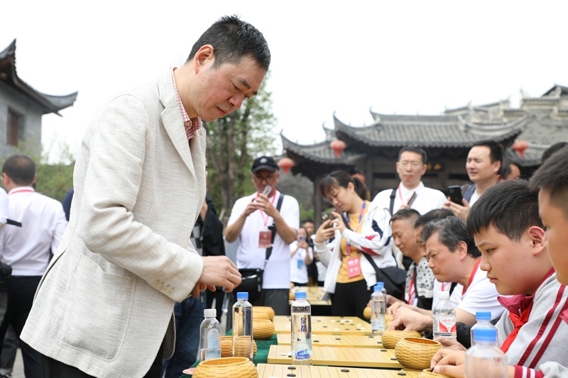 人民網(wǎng)銅仁5月15日電 (記者李乃妍)5月14日,第十屆中國女子圍棋甲級(jí)聯(lián)賽希望教室捐贈(zèng)儀式和指導(dǎo)棋活動(dòng)在銅仁市梵凈書院進(jìn)行,中國圍棋協(xié)會(huì)主席林建超等出席活動(dòng)并發(fā)言。世界冠軍古力、孔杰、馬曉春等與當(dāng)?shù)匦∑逋轮笇?dǎo)棋。