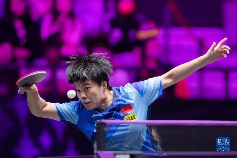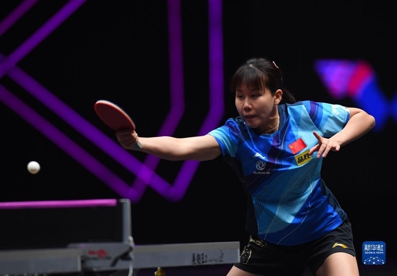 2023年4月11日,陳幸同在比賽中回球。當(dāng)日,在河南新鄉(xiāng)舉行的世界乒乓球職業(yè)大聯(lián)盟(WTT)新鄉(xiāng)冠軍賽女單首輪比賽中,中國選手陳幸同以3比0戰(zhàn)勝日本選手木原美悠,晉級十六強。新華社記者 郝源攝