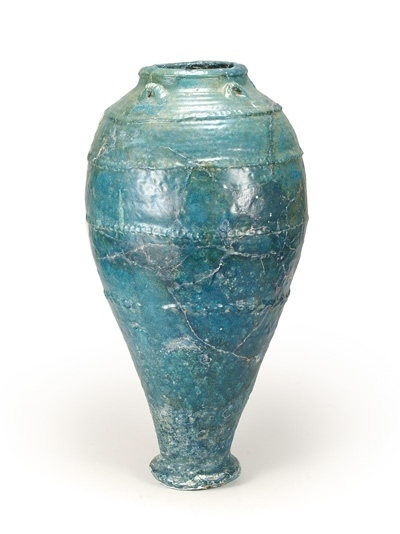 展覽展出的孔雀藍(lán)釉陶瓶。