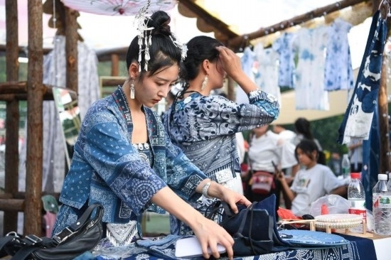 榕江縣古州文化旅游投資開發(fā)(集團)有限責(zé)任公司總經(jīng)理孫國秀說,“村超”的火爆帶火了相關(guān)產(chǎn)業(yè)?!皟H全縣開發(fā)的藍染‘村超’文創(chuàng)產(chǎn)品就有200多款,包括T恤、布袋、球隊隊標等?!?/p>