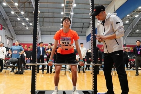 2023年12月29日,2023年國家隊冬訓(xùn)體能大比武在國家體育總局訓(xùn)練局舉行,來自射擊、舉重、田徑、游泳、跳水、花樣游泳、體操、蹦床、乒乓球、羽毛球等10支國家隊的150名運動員參加活動。圖為國家舉重隊運動員李發(fā)彬在測試中。