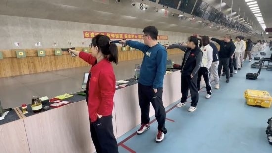 射擊隊訓(xùn)練館內(nèi),加油助威聲此起彼伏。一邊是準(zhǔn)備瞄準(zhǔn)射擊的運動員,另一邊則是由教練員、運動員組成的“啦啦隊”。在熱烈的氛圍中,隊員們一次次扣動扳機,完成射擊。