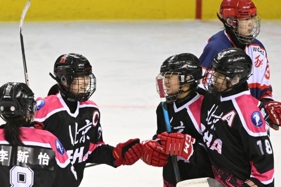 2月16日,第十四屆全國冬季運(yùn)動(dòng)會冰球項(xiàng)目女子青年組小組循環(huán)賽A組比賽中。新華社記者 鄧華 攝