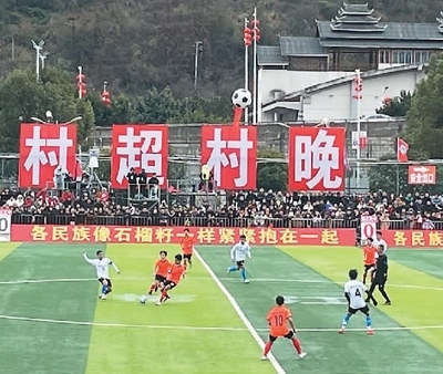 “村超”是指由當?shù)厝罕娮詣?chuàng)舉辦的“貴州榕江(三寶侗寨)和美鄉(xiāng)村足球超級聯(lián)賽”。2023年初,文化和旅游部下發(fā)文件,鼓勵各地開展“四季村晚”活動。