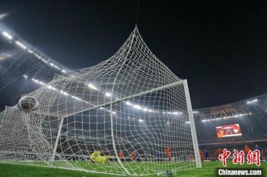 3月26日晚,在天津舉行的2026年國際足聯(lián)世界杯亞洲區(qū)預(yù)選賽36強賽C組比賽中,中國隊主場4比1戰(zhàn)勝新加坡隊。圖為中國隊球員費南多在比賽中主罰點球破門。佟郁 攝