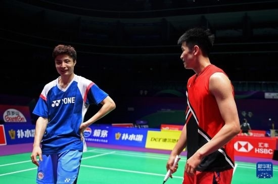 4月26日,中國羽毛球協(xié)會副主席夏煊澤(右)在訓(xùn)練中指導(dǎo)王祉怡。新華社記者 侯昭康 攝