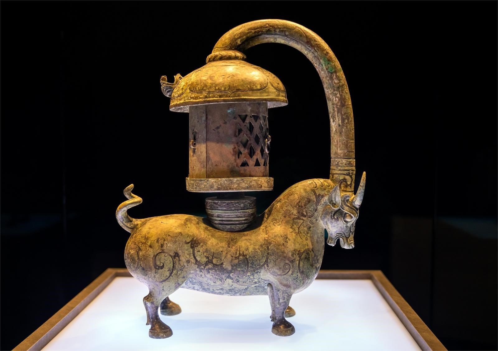 2000年前的錯(cuò)金銀銅牛燈,環(huán)保,無煙。