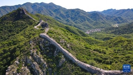 石峽關(guān)長(zhǎng)城和長(zhǎng)城腳下的石峽村(6月1日攝,無人機(jī)照片)。