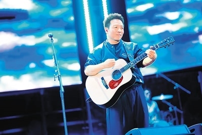 中國(guó)音樂(lè)人許巍在音樂(lè)節(jié)表演