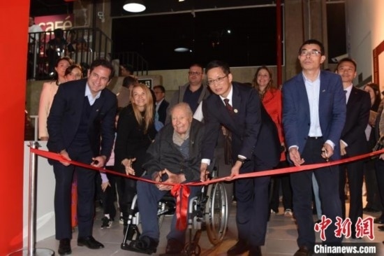 當(dāng)?shù)貢r(shí)間8月12日,巴西圣保羅州坎皮納斯市,“中國(guó)藝術(shù)五千年 塞奎拉·萊特收藏”啟幕。圖為收藏家塞奎拉·萊特(前左二)在開幕式上剪彩。中新社記者 林春茵 攝