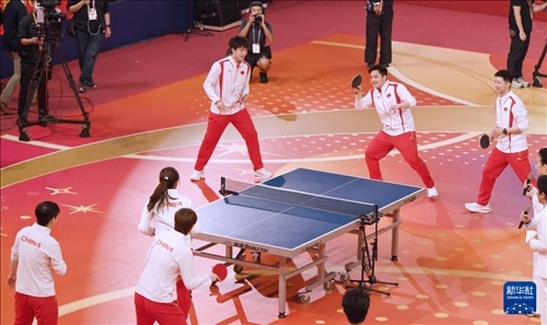 8月30日,乒乓球隊六位冠軍選手進行乒乓球表演。