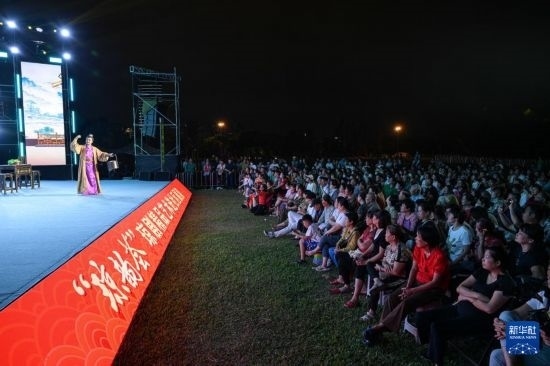 10月6日,“瓊韻薈”瓊劇精品藝術(shù)進(jìn)社區(qū)展演在海南省??谑腥f綠園舉行。來自海南省瓊劇院一團(tuán)的演員們?yōu)橛^眾獻(xiàn)上了古裝瓊劇《巡按審妻》。觀眾在觀看瓊劇過程中,感受非遺文化的魅力。
