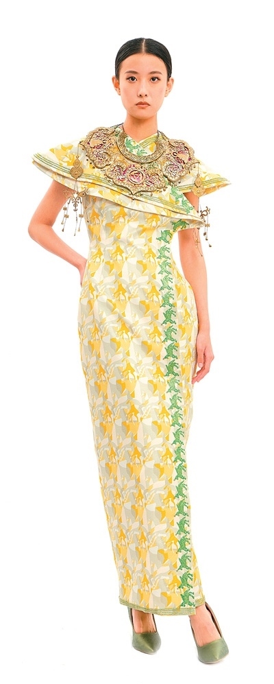 崔榮榮團(tuán)隊(duì)為“中法時(shí)尚之約:絲路遺產(chǎn)創(chuàng)新設(shè)計(jì)時(shí)裝發(fā)布會”設(shè)計(jì)的“絲綢之路”禮服。