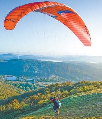 2024年滑翔傘定點(diǎn)世界杯總決賽在湖北荊門舉行,選手在比賽中。吳 君 張?zhí)祚磾z影報道