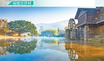 福建漳州市南靖縣官洋村,是土樓文化、閩南文化、客家文化的“大觀園”。圖為官洋村的土樓與古榕樹、溪水相得益彰。施 鈺 馮木波攝影報(bào)道