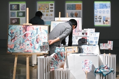 2023年12月16日,觀眾在中華世紀(jì)壇舉辦的圓明印象·皇家“游”禮文創(chuàng)設(shè)計展欣賞文創(chuàng)作品。新華社記者 羅曉光攝