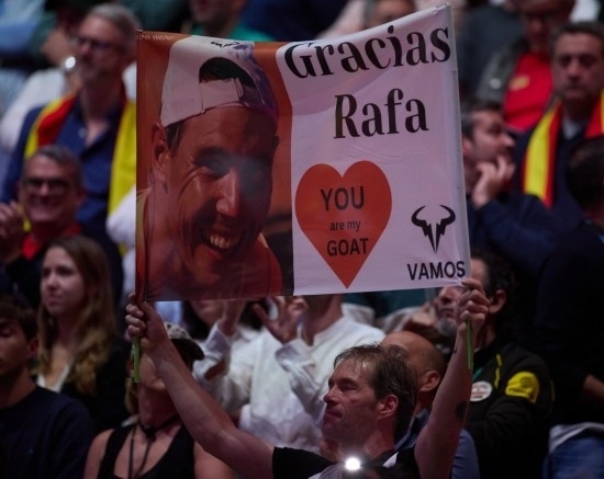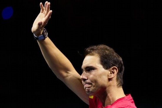 看著年輕時(shí)的自己帶著一臉青澀捧起一座座冠軍獎(jiǎng)杯的影像出現(xiàn)在球場大屏幕上,站在馬拉加體育宮球場中心的納達(dá)爾眼里泛起了淚光——這一刻,他即將與自己輝煌的職業(yè)生涯告別。