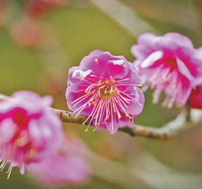 綻放的梅花“南京紅”。