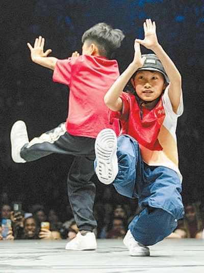 街舞舞種風(fēng)格各異。Breaking(霹靂舞)地板動作高難而充滿力量感,Locking(鎖舞)因瞬間停頓而節(jié)奏感強(qiáng),Popping(震感舞)注重肌肉收放,Hip-Hop(嘻哈舞)則更強(qiáng)調(diào)自由隨性的表達(dá)和對音樂的獨(dú)特詮釋。賽場上,小舞者舞蹈動作收放自如,展現(xiàn)出高超的身體協(xié)調(diào)能力、控制能力。他們的精彩“卡點(diǎn)”,在隨機(jī)播放音樂即興發(fā)揮的Battle(斗舞)中更是成為吸睛亮點(diǎn)。但做到這些還不夠,正如網(wǎng)友所說:“最后拼的都是文化底蘊(yùn)?!弊屩袊倌暝趯﹃噰H“技術(shù)天花板”時(shí)脫穎而出的,是他們超越了炫酷的淺表追求,舞出了可貴的文化情懷。
