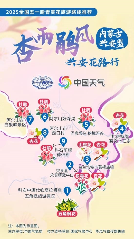 4月23日,中國(guó)氣象局參與文化和旅游部2025年全國(guó)“五一”文化和旅游消費(fèi)周活動(dòng),推出12條 “五一踏青賞花旅游路線”。每一條路線,都串聯(lián)起春日里最動(dòng)人的景致。在即將到來(lái)的五一假期,不妨從這些路線中挑選你心儀的一條,趁著春光正好,開(kāi)啟一場(chǎng)與春日中國(guó)的浪漫邂逅。