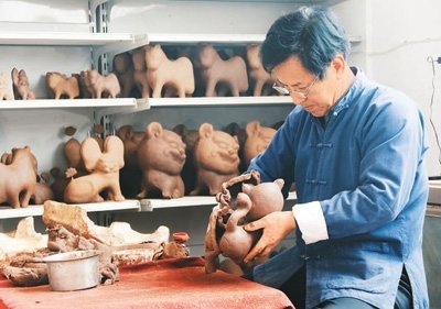 前些年,胡新明大膽嘗試,在泥里加入紙漿、棉花、面糊、糯米汁等,反復(fù)試驗(yàn),研制出“摔不爛”的泥塑;創(chuàng)新泥塑造型,讓各類產(chǎn)品推陳出新。