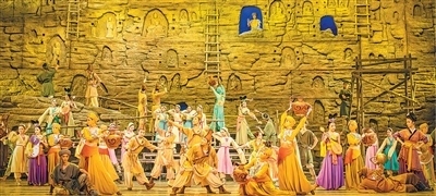 陳維亞:舞劇精品是“演”出來的。《大夢敦煌》絕大多數(shù)是商演。每演一次,都會復盤一次。作品經(jīng)歷了無數(shù)次小改動,四五次結構性變動。比如,2018年,我們增加了莫高喬裝打扮,隨著民間藝人表演隊伍參與招親的情節(jié),目的是強化戲劇沖突。再比如我們在第二場增加了飛天長綢琵琶女的表演,強化快樂氛圍。每一處改動,都是從觀眾的角度去審視的結果。