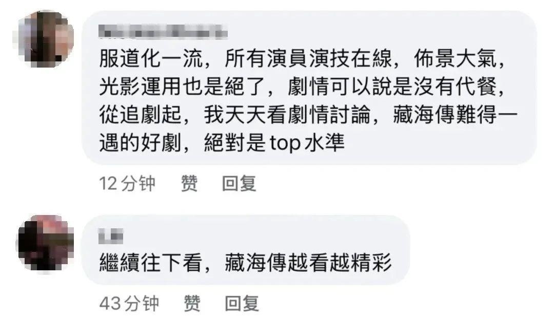 “畫面、場景、演技、情節(jié),各方面都近乎完美,相當(dāng)優(yōu)良的制作”,“服化道一流,演員演技在線,布景大氣”,“感受到了老祖宗的審美”,“連看兩遍,因為很多細節(jié)值得細品”……一些臺灣觀眾在“看臺?!焙M馄脚_留言大贊劇集,足見這部叫好叫座的總臺大劇深深吸引了臺灣觀眾。