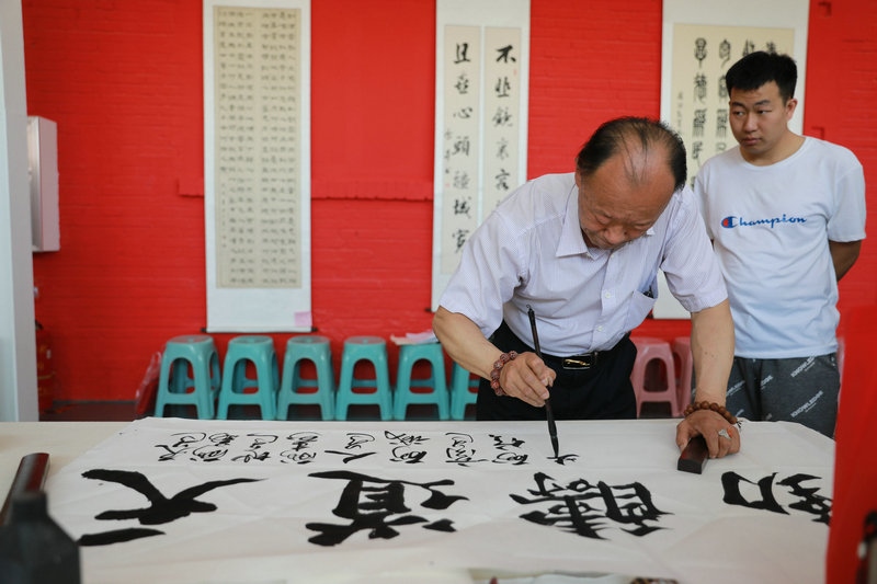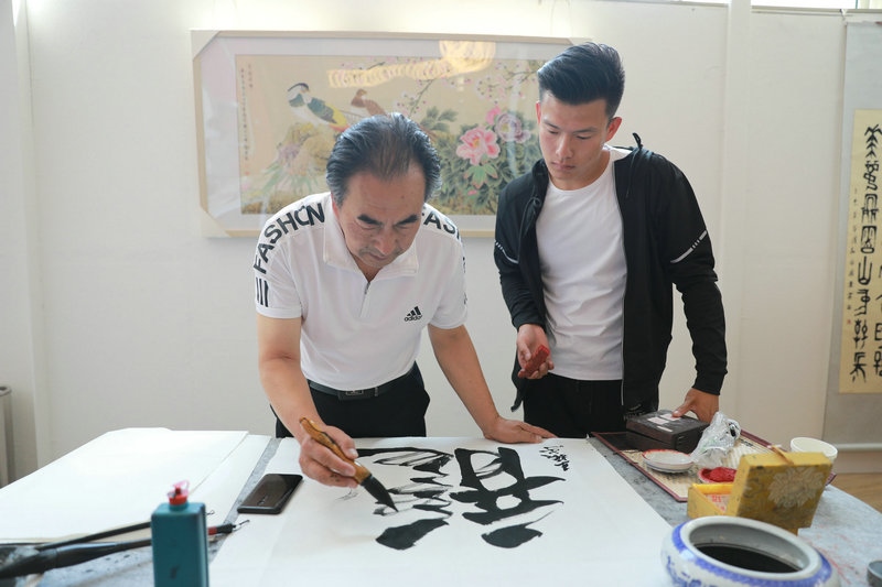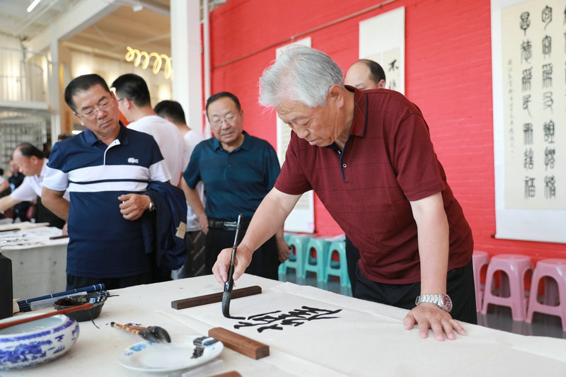 活動現(xiàn)場,書畫家們鋪開宣紙,揮灑愛心情懷。30余名書畫家和愛心人士在活動現(xiàn)場揮毫潑墨、內(nèi)蘊文質(zhì)精華,外彰形制逸美,以古典文詞展示"尚善"情操和"望賢"之心。"止于至善"、"家和業(yè)興,寧靜致遠"、"構(gòu)建和諧社會 倡導助殘風尚"……一幅幅充滿著關(guān)愛和正能量的藝術(shù)作品陸續(xù)被創(chuàng)作完成。